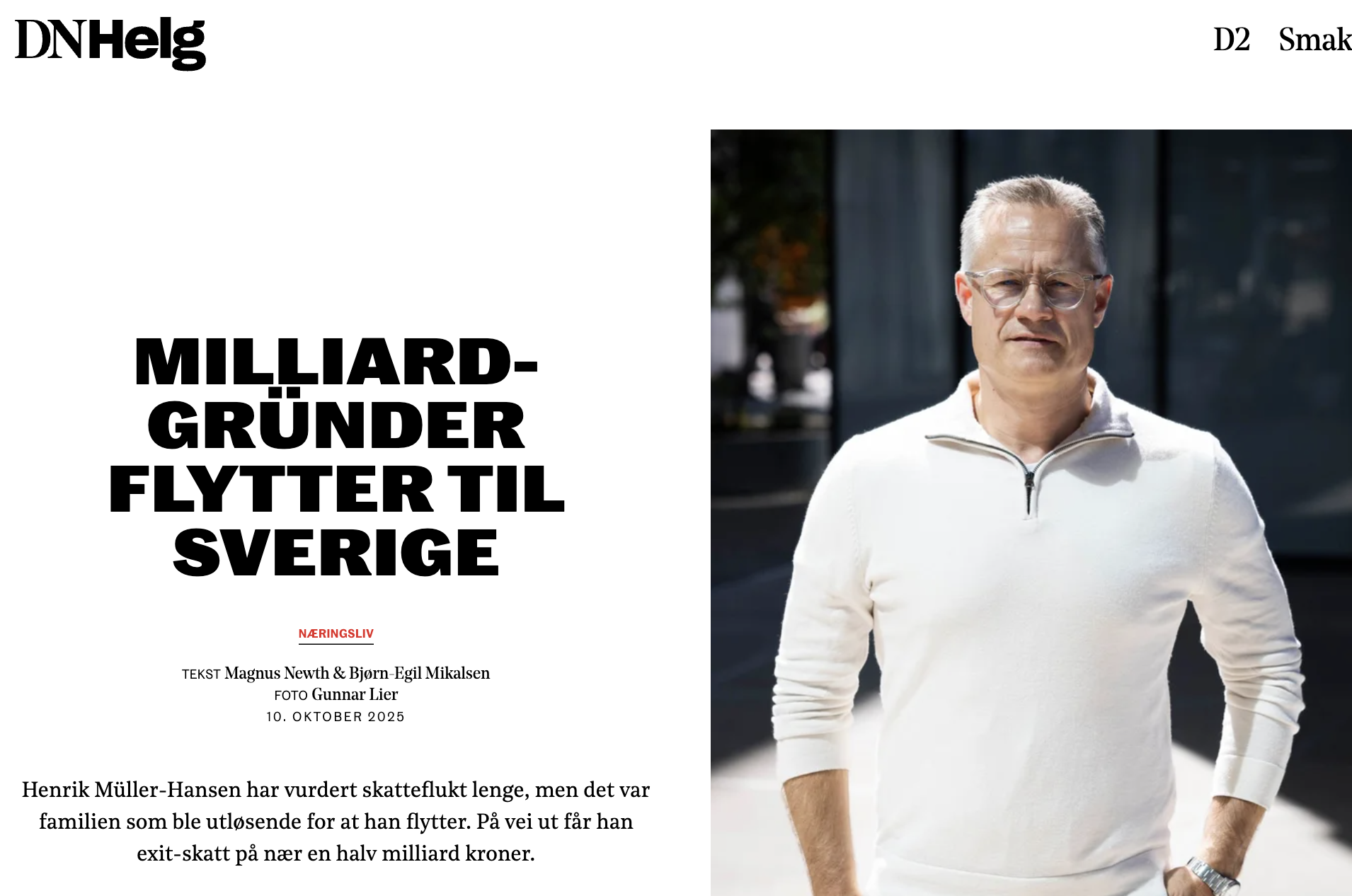 Gelato founder Henrik Müller Hansen paid 500 million NOK to move to Sweden.